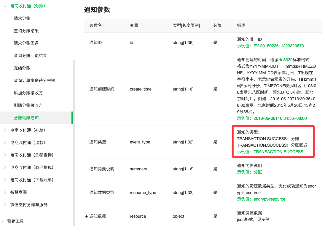 不知道是文档写错了,还是就是这样?分账通知和分账退回通知,通知类型,枚举值是一样的,如何区分通知类型?