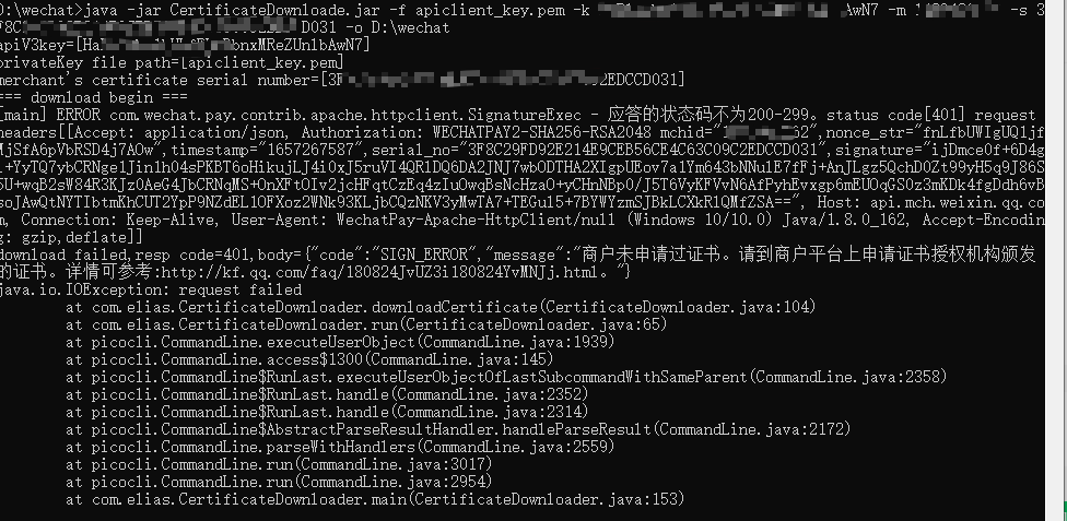 第一次下载支付证书CertificateDownloade工具提示:商户未申请过证书。请到商户平台上申请证书授权机构颁发 的证书。详情可参考:http://kf.qq.com/faq/180824JvUZ3i180824YvMNJj.html。