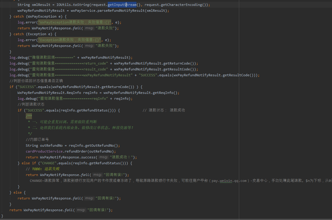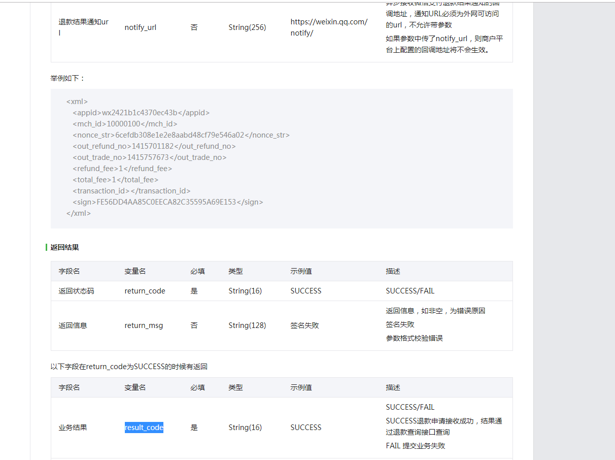 看result_code的说明我个人猜测是只有result_code返回success了才会调用退款结果,但是上边 notify_url里也没说明是不是,刚搜了一下并没有发现类似的,特发此贴询问一下,在线等大佬解惑