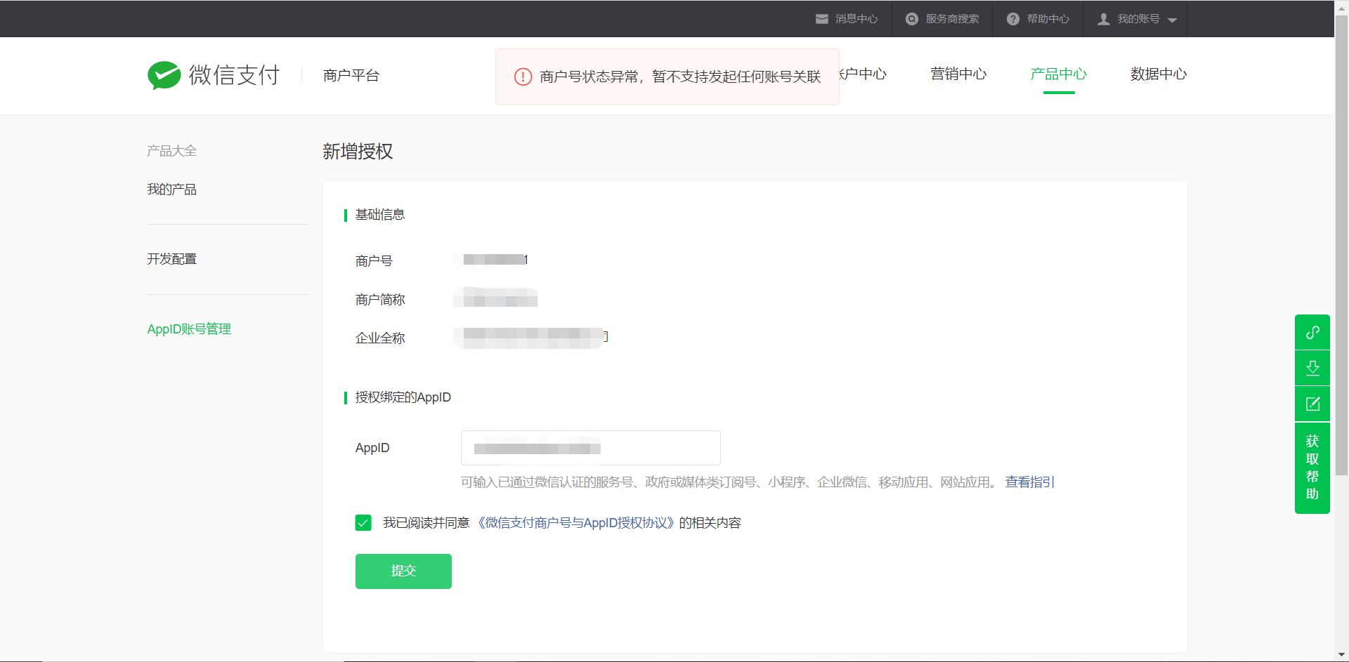 有同学解决过这个问题吗?询问客服,客服回答多使用支付功能,保持健康交易一段时间,可是怎么去定义呢(交易多久?金额要求?订单数量?),而且我对接APP和公众号都没问题,就是小程序出现这个状况,现在项目等着对接支付上线,卡了一两个礼拜了,每天也有测试订单在交易,就是发不了关联,何时是个头啊!