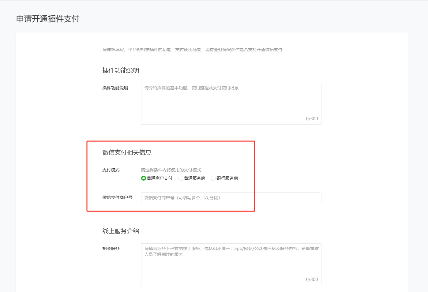 插件开通支付能力需要选择使用的支付模式,普通商户支付,普通服务商,银行服务商三者有什么区别和限制?