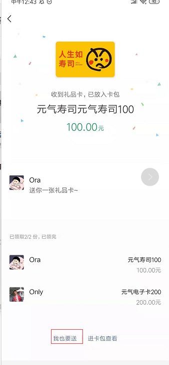 点击我也要送,由于是自定义礼品卡,跳转页面地址已发给腾讯客服帮忙设置,但设置后跳转页面如下,
