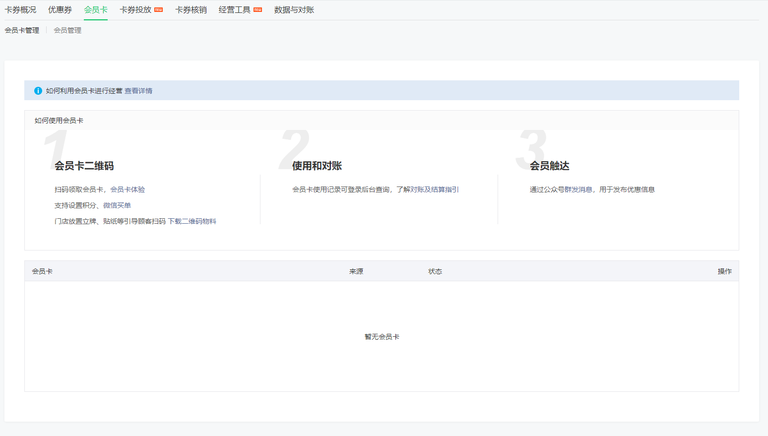 1:在会员卡界面没有看到有创建会员卡的地方和操作选项(这是什么原因呢?)