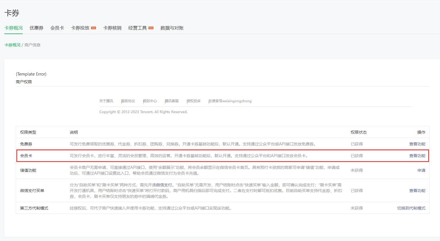 2:商户信息(商户权限也标明是有会员卡管理权限的)但是仍然无法创建是怎么回事?