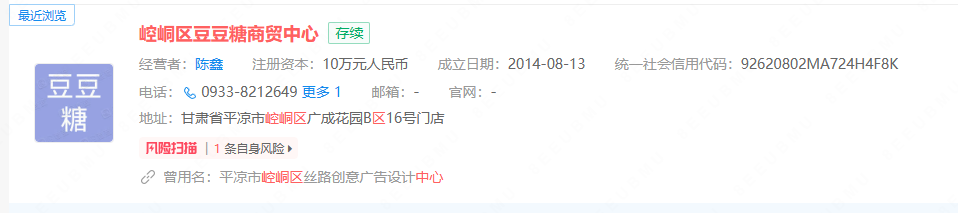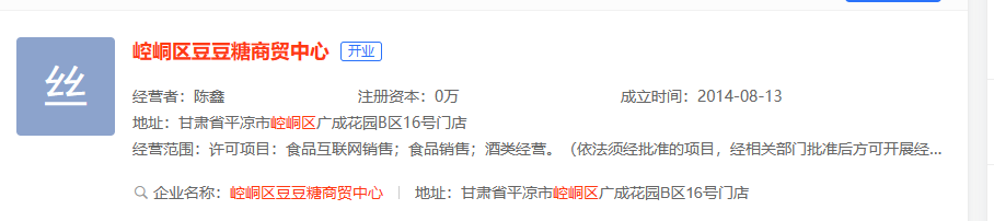 目前,国家企业信用信息公示系统、企查查、爱企查等均已变更为新名称“崆峒区豆豆糖商贸中心”好多天了,但微信支付审核依然无法通过。