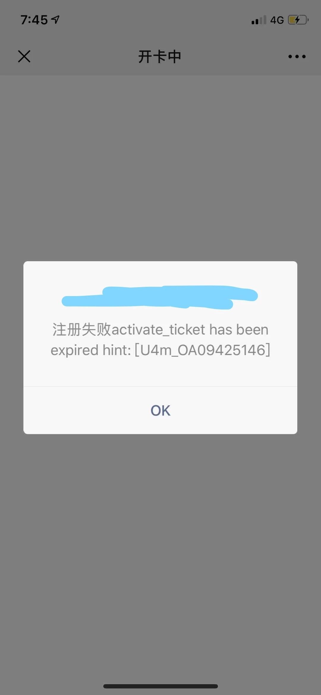 跳转型会员卡,提交后在H5页面获取到activate_ticket后传给后台。报错activate_ticket过期,如图:
