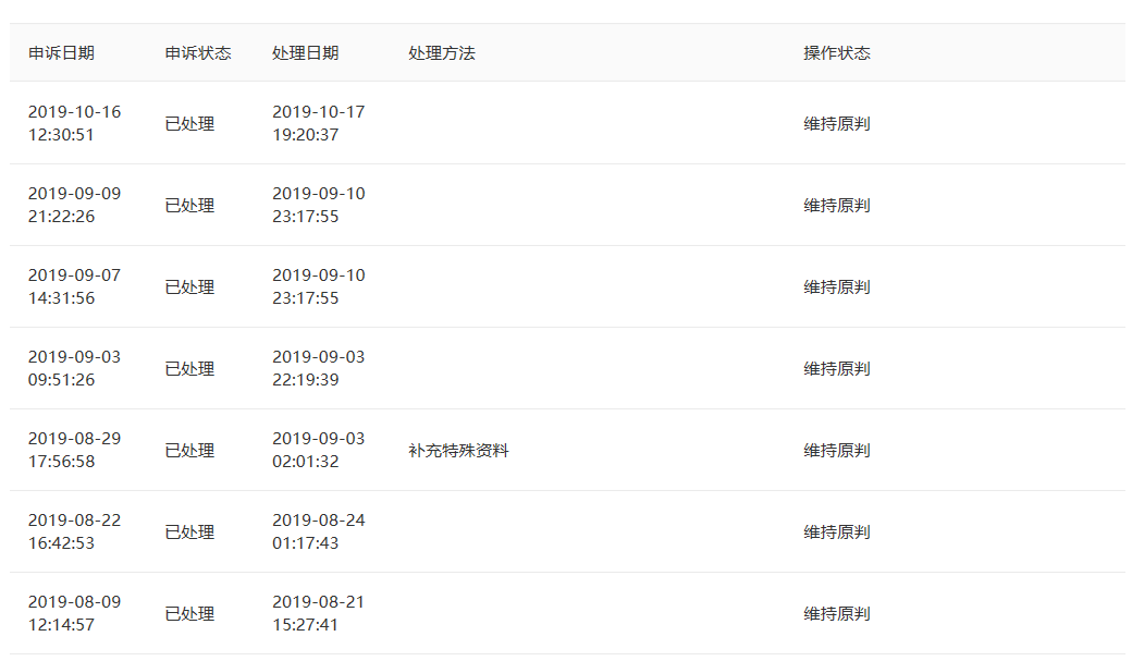 以下是我申诉的记录,有一条奇葩的记录:补充特殊资料