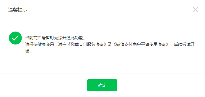 核实该商户号暂不符合开通条件,请保持持续稳定健康交易,后续再尝试申请开通,谢谢