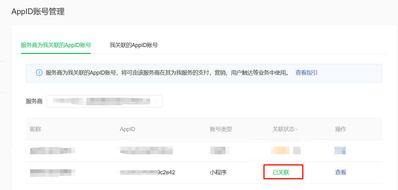 商户号(服务商模式)已经关联了商户号 但是小程序后台不显示?