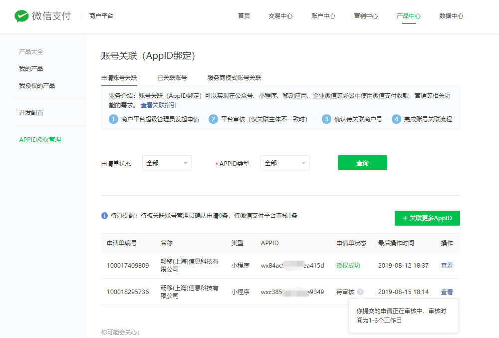 在服务商子商户账号中,产品中心 -> appid 授权管理页面,关联同主体小程序时,顶部提示同主体是不需要审核的,之前确实是不需要,今天添加的时候,触发了审核;已经再次确认是统一主体的,名字完全一致(包括中间的括号格式) 。麻烦看下这里存在什么问题吗?