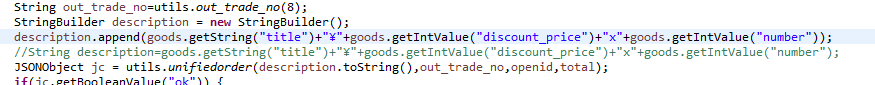 直接看图,图中注释的那行的方式拼接拉不起支付,attach和description两个字段都是一样拉不起,错误码好像都是400