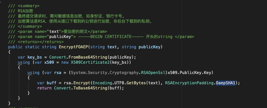 /// 加密算法是RSA,使用从接口下载到的公钥进行加密,非后台下载到的私钥。