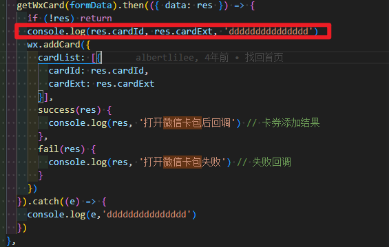 console.log(res, '打开微信卡包后回调') // 卡券添加结果