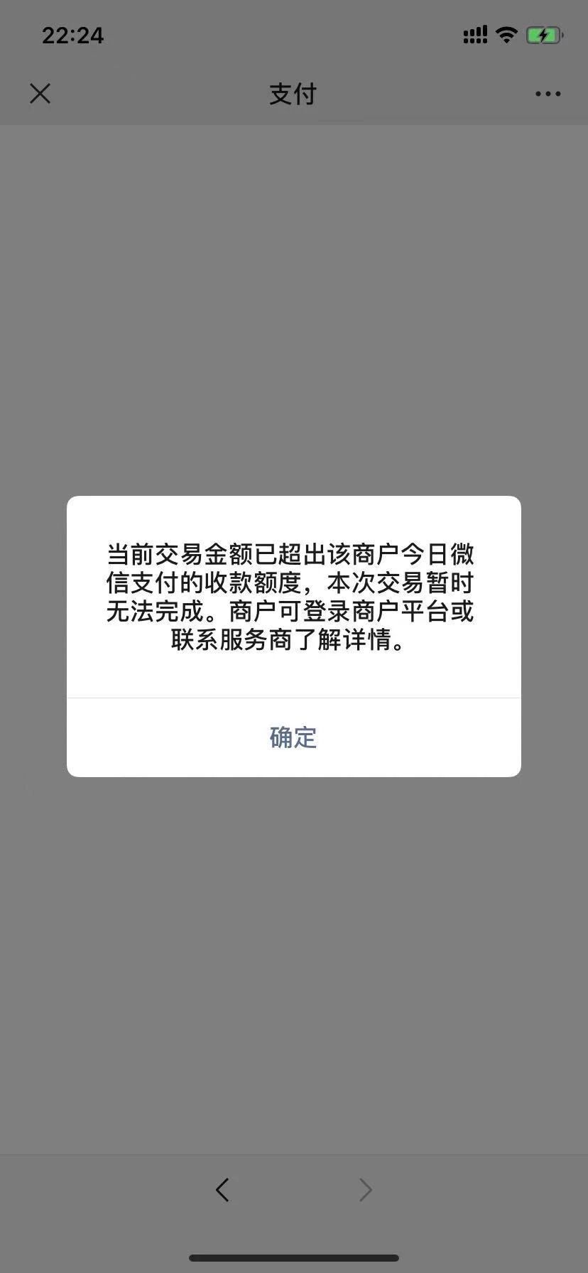 目前普通商户每日收款营业额无上限,但是买家使用微信付款时根据商户选择的行业属性不同对应的支付限额不同,行业属性与对应限额如下: