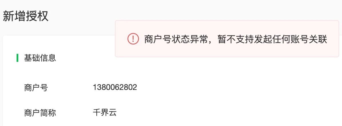 通过公司其他的已关联小程序是可以正常支付的,现在需要绑定另一个小程序,但是现在提示异常,导致绑定不了。请问怎么解决?