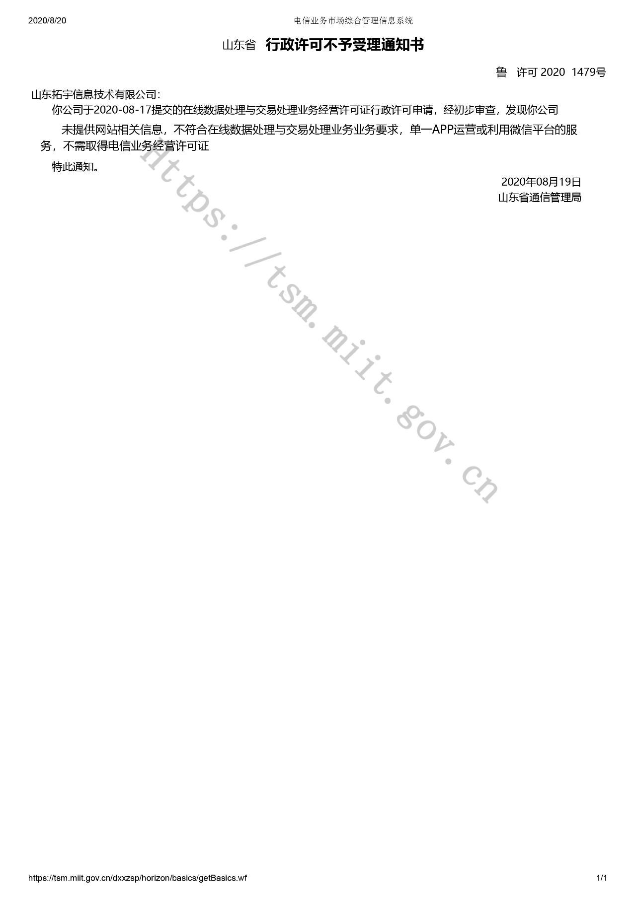 我司社区团购小程序“拼团小栈”被微信支付告知要整改,接入收付通,我司同意整改并愿意接入收付通服务。但申请接入时发现要求上传《增值电信业务经营许可证》,我司在申请该许可证时被通管局告知无需办理,因为我司没有网站和App上的业务,只在微信小程序上开展业务无需办理,且不予受理,并开具了《行政许可不予受理通知书》。