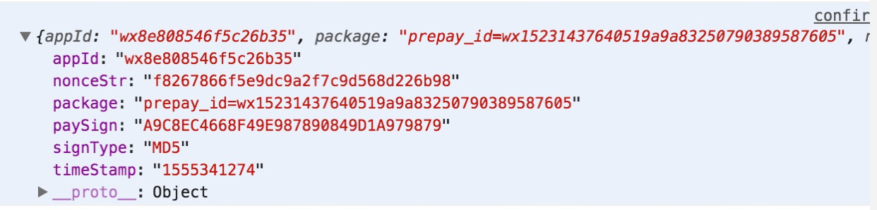 参数为 正常的支付调用参数,