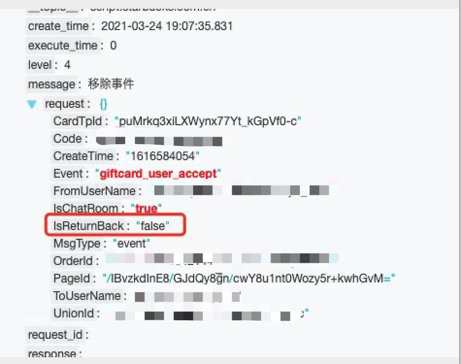 同样的触发场景,不同账号,账号一退回后有返回这个字段,另外一个账号退回后没有这字段